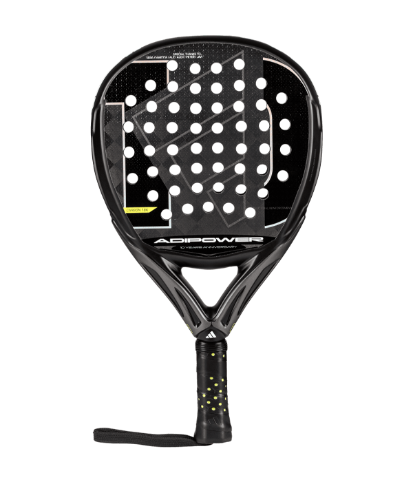 La pala Adidas Adipower 10 Aniversario celebra diez años de innovación con una estructura de carbono 18K y goma EVA High Memory para un rendimiento óptimo. Su diseño diamante oversize aporta potencia, mientras que las tecnologías Power Embossed Ridge, Smart Holes Curve y Spin Blade garantizan control y precisión. Ideal para jugadores expertos que buscan un equilibrio perfecto para dominar cada punto con seguridad y eficacia.