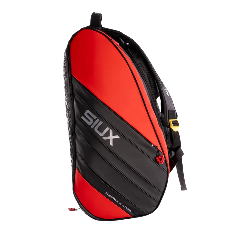 El Electra Stupa representa la excelencia en la Gama Pro de Siux. Diseñado para jugadores exigentes, este paletero de 63 litros ofrece capacidad para 4 palas con aislamiento térmico de alto rendimiento que protege tu equipamiento en cualquier condición. Construido en poliéster reforzado con PVC, sus dimensiones de 60 × 47 × 30 cm integran un compartimento dedicado para zapatillas, dos bolsillos laterales de acceso rápido y un bolsillo interior oculto para objetos de valor.